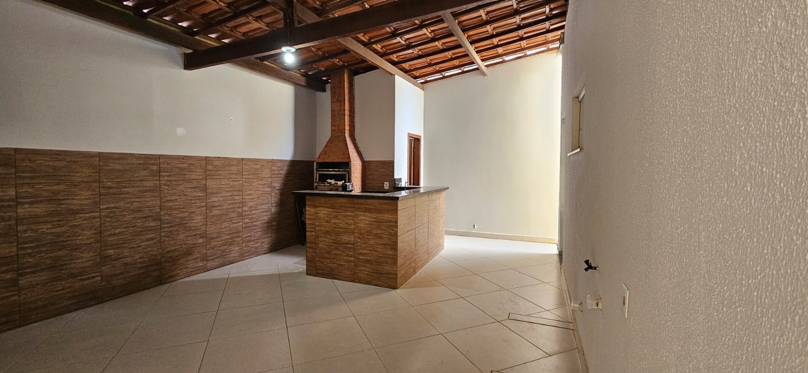 Garagem coberta, área gourmet com churrasqueira.